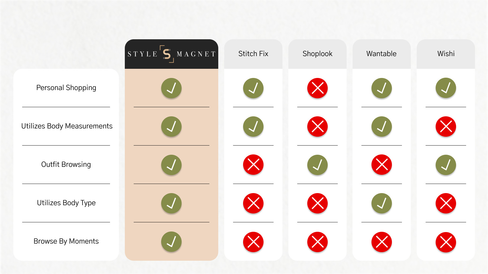 I believe that Style Magnet solves these problems through body type matching, size recommendations, and style matching while offering further service like personal shopping and browse by moments to make shopping online easier than it’s ever been.